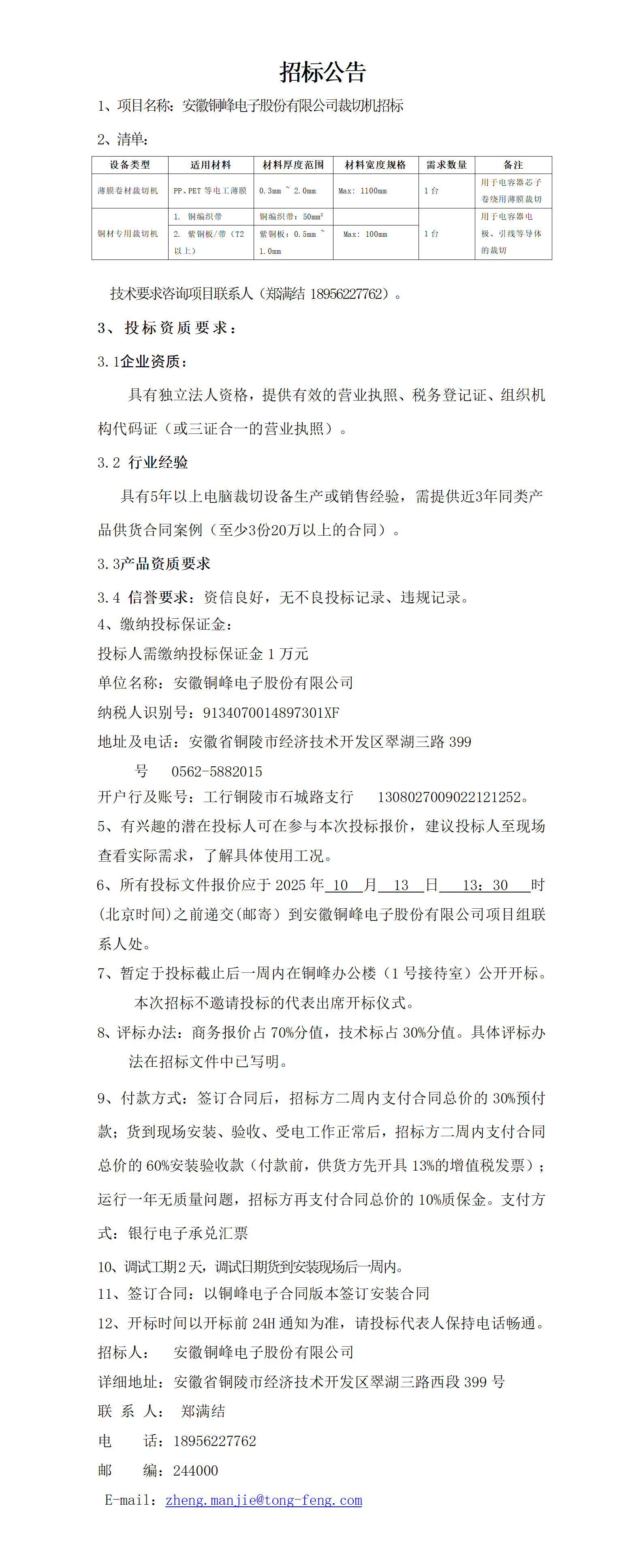 安徽銅峰電子股份有限公司 (安徽銅峰電子股份有限公司景觀綠化工程 招標(biāo)公告)_01