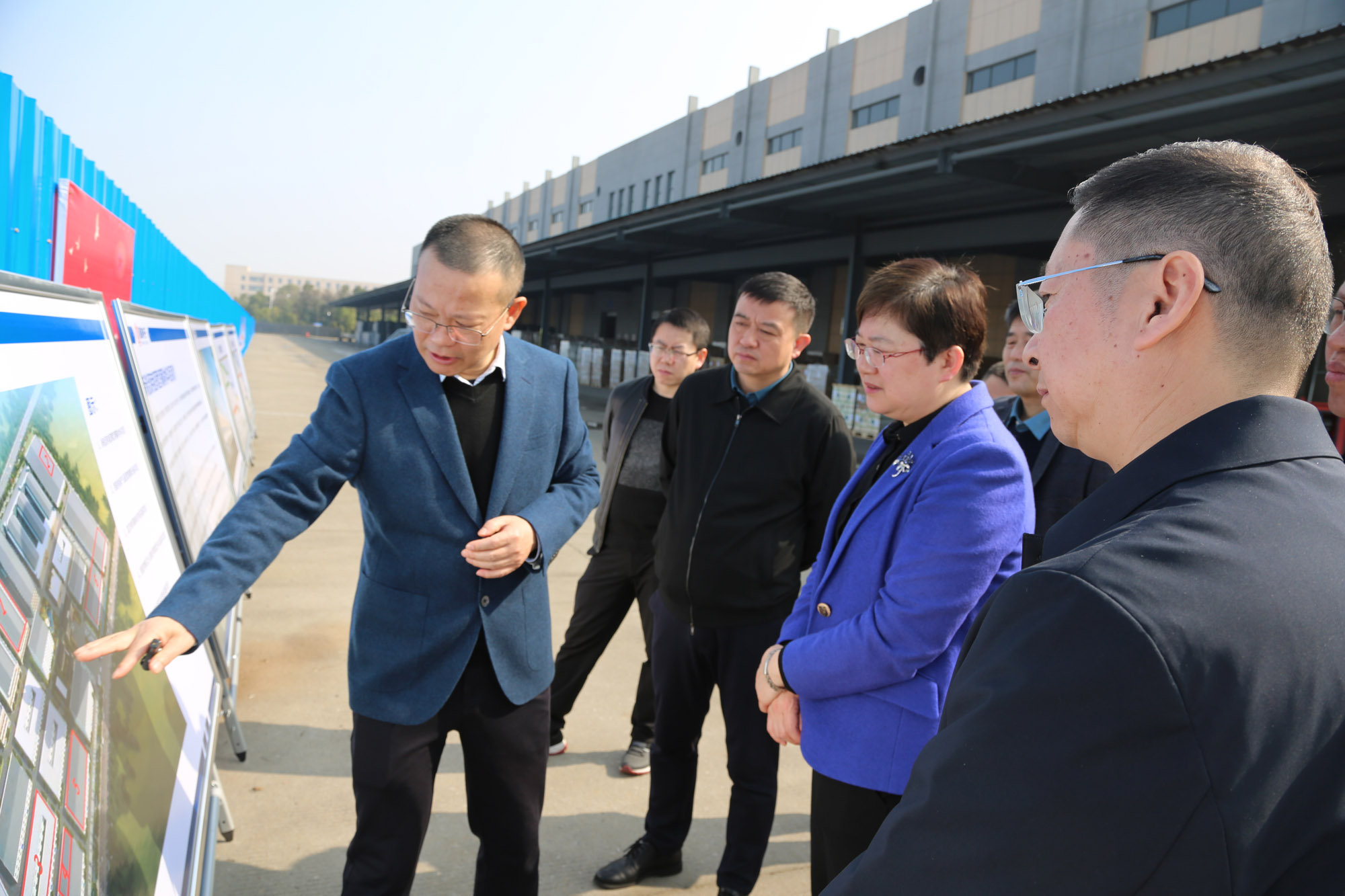在公司重點項目建設(shè)現(xiàn)場,昌紅梅認(rèn)真聽取黃明強關(guān)于企業(yè)經(jīng)營和項目建設(shè)等情況的匯報,詳細(xì)觀看公司2021年以來謀劃實施的六個重點項目介紹展板。