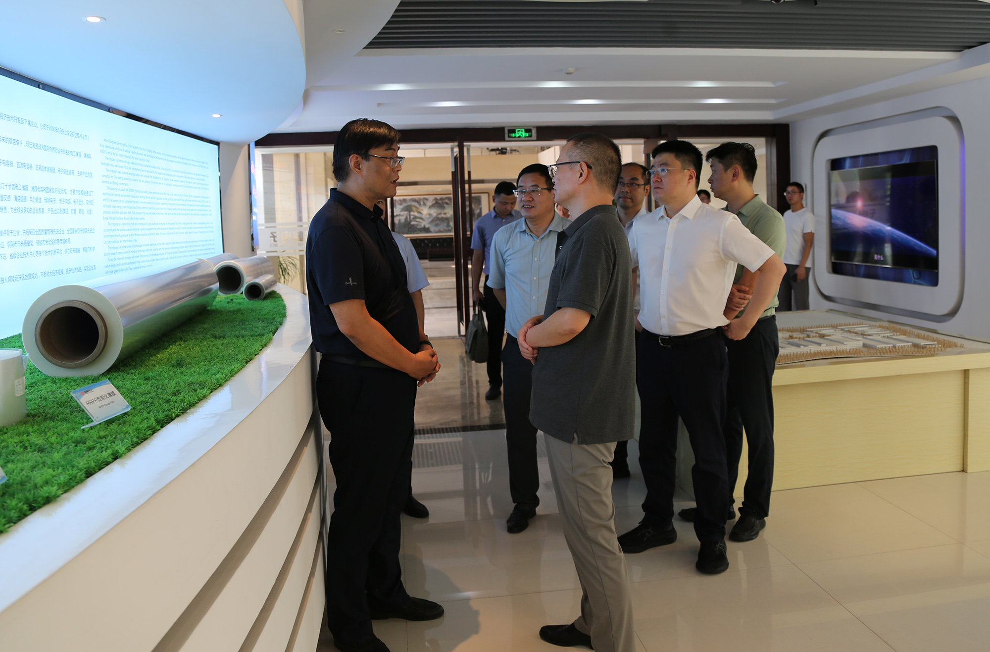 吳強深入宣講黨的二十屆三中全會精神和習近平總書記關(guān)于科技創(chuàng)新的重要論述,并參觀了企業(yè)展廳和銅愛公司生產(chǎn)車間。公司負責人向吳強一行介紹了企業(yè)生產(chǎn)經(jīng)營、項目建設、技術(shù)創(chuàng)新、人才培養(yǎng)等工作情況,并重點匯報了國家級博士后工作站、省重點實驗室等創(chuàng)新平臺建設、產(chǎn)業(yè)鏈協(xié)同創(chuàng)新項目推進、新能源汽車電容器和復合集流體用基膜等重點新產(chǎn)品研發(fā)、推廣的進展和成效。