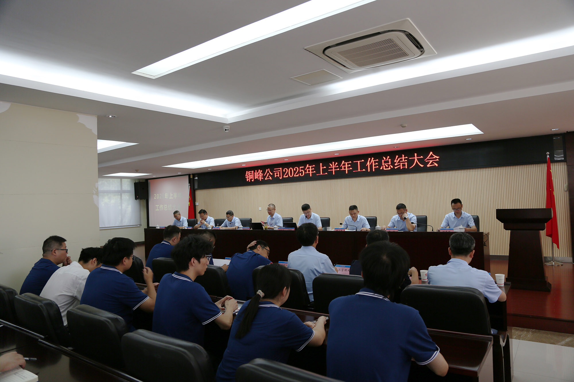 8月8日下午,公司在辦公樓二樓職教室隆重召開2025年上半年工作總結大會。公司黨政領導班子成員、各生產經營單位車間主任和職能部門主管級以上人員、部分職工代表和新進大學生代表等參加會議。會議認真復盤上半年運營成果,深入分析當前經營形勢,精心謀劃下半年重點工作。公司黨委書記、董事長黃明強出席會議并作總結講話,對公司上半年工作進行總體分析,對下半年工作提出要求。總經理鮑俊華主持會議,并對公司各單位和部門的具體工作進行點評。公司各生產單位和相關職能部門分別匯報了上半年主要工作及下半年工作計劃。