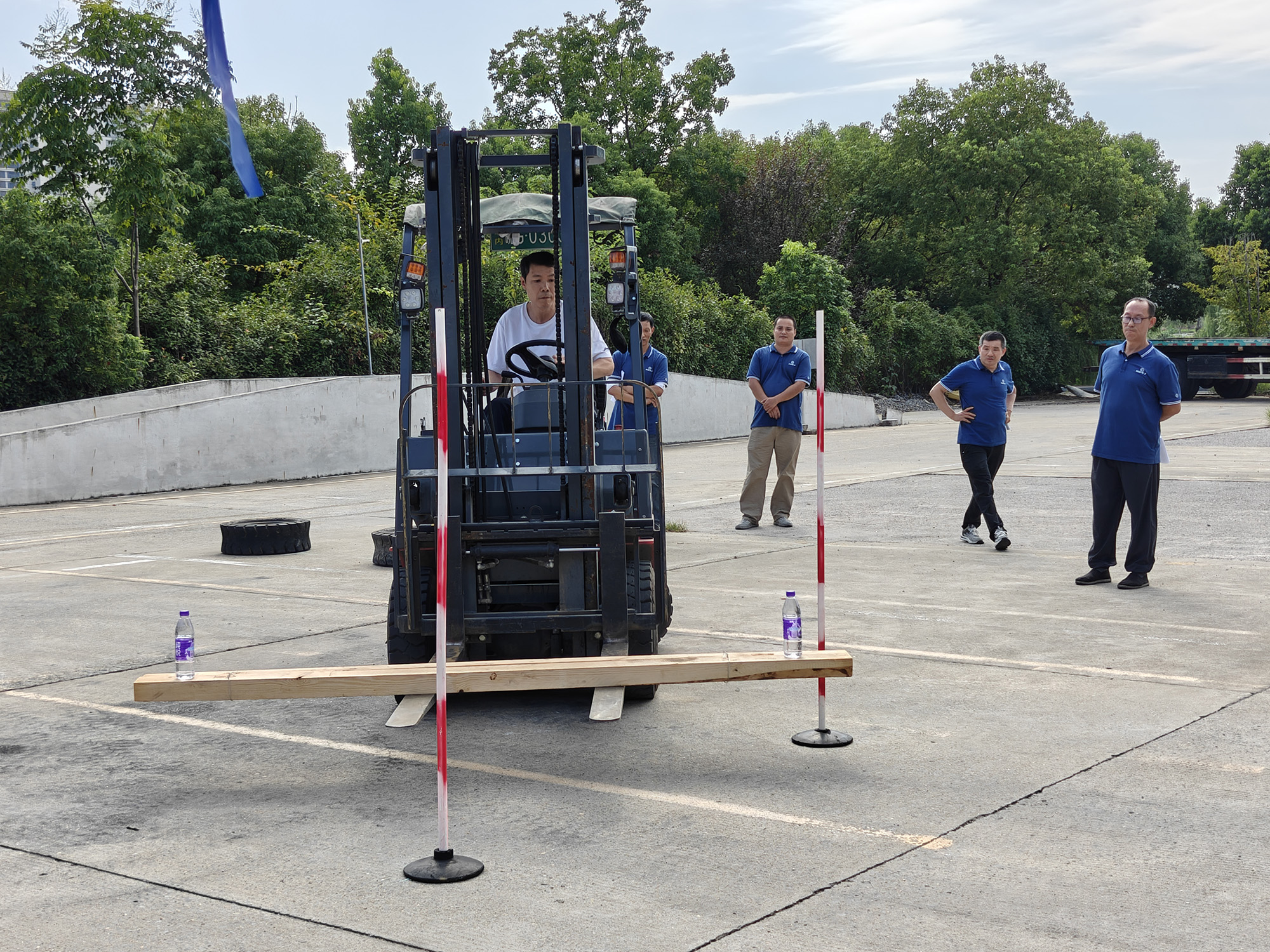 叉車技能比武側(cè)重于選手的操控熟練性與心理素質(zhì)。項(xiàng)目設(shè)置緊密貼合實(shí)際作業(yè)場(chǎng)景,要求選手在限定時(shí)間內(nèi)完成轉(zhuǎn)向往返、托盤精準(zhǔn)移庫(kù)碼放等動(dòng)作,并在繞障礙物操作過(guò)程中確保托盤上礦泉水瓶保持穩(wěn)定,不得掉落。競(jìng)賽不僅要求速度,更注重操作的平穩(wěn)性與準(zhǔn)確性,充分體現(xiàn)出高標(biāo)準(zhǔn)的作業(yè)要求。